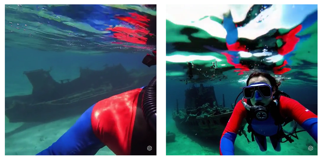 - 이에 비해, Sora(오른쪽)의 동영상은 프레임이 개선됨