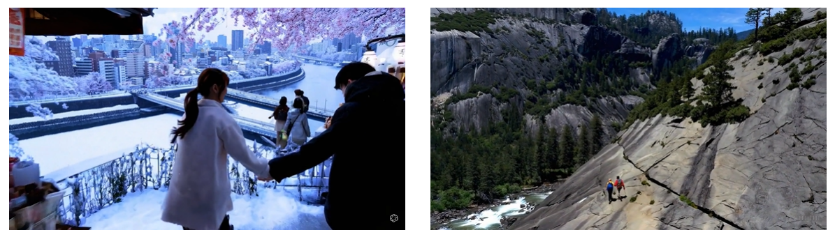 - 이를 통해 Sora는 반복되는 비디오 제작, 정적 이미지 애니메이션, 비디오 앞·뒤로의 시간적 확장 등 다양한 이미지 및 비디오 편집 작업을 완벽하게 수행할 수 있음