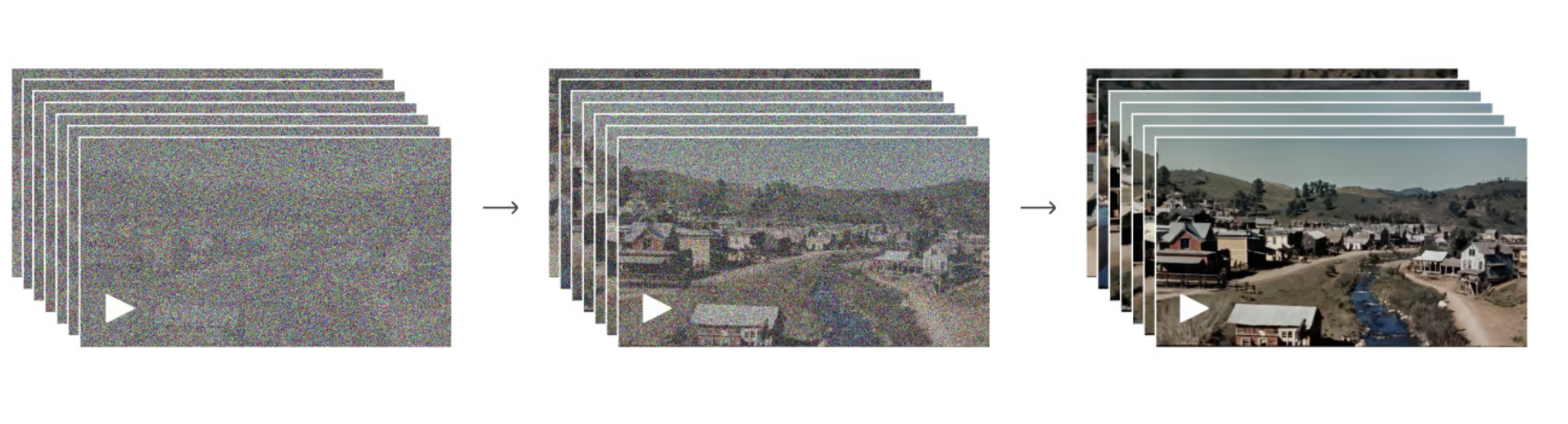 - Sora는 인위적으로 노이즈를 포함시킨 패치(및 텍스트 프롬프트와 같은 조건 정보)를 입력으로 받는 확산 모델(diffusion model)로, 모델의 노이즈가 없는, 원본의 "깨끗한(clean)" 패치를 예측하도록 학습됨