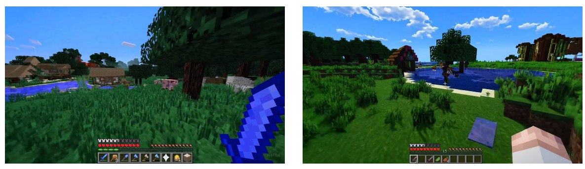 - Sora는 Minecraft에서 게임의 규칙에 따라 플레이어를 제어하는 동시에, 게임 세계와 그 물리적 속성을 충실하게 렌더링할 수 있음