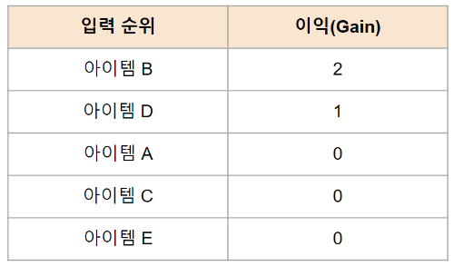 - 이득 계산 결과를 그냥 내림차순 정렬하고 DCG를 계산하면 됨