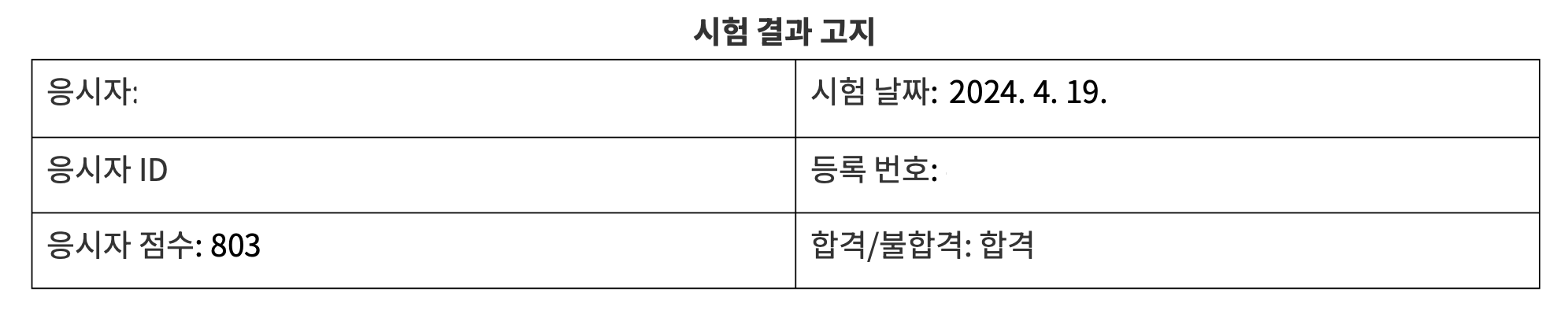 - 나중에 안 사실이지만, 채점 정책에 따라 65문제 중 50문제만 채점에 반영된다고 합니다. 그리고 문제마다 배점이 다르다고 합니다. 합격에는 약간의 운도 따라야겠습니다.