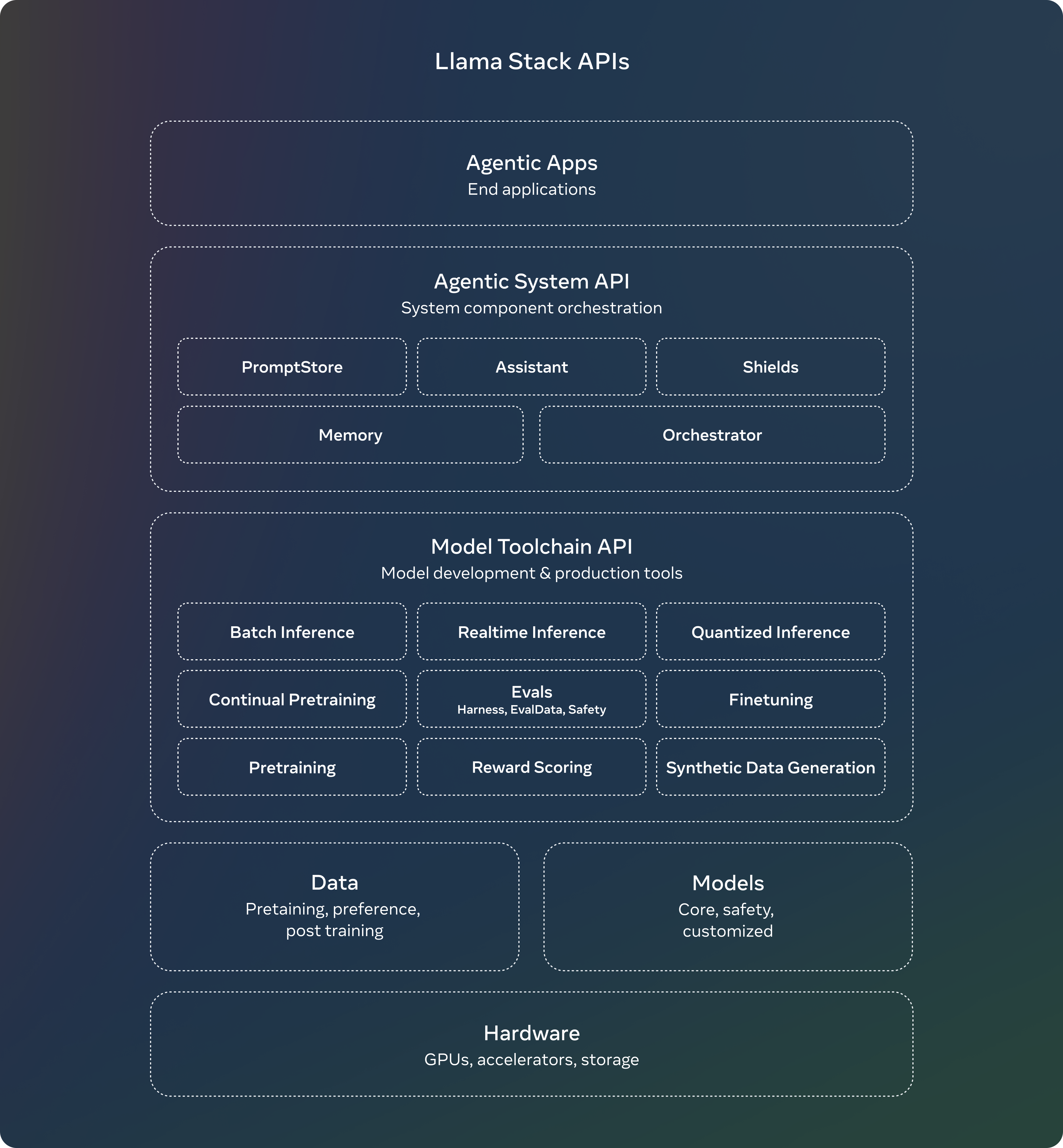 - 7월에 Llama Stack API에 대한 의견 요청을 발표했으며, 이를 통해 Llama 모델을 맞춤화하고 에이전트 애플리케이션을 구축하는 표준화된 인터페이스를 제안함.